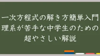 中学数学 一次方程式の解き方簡単入門|理系が苦手な中学生のための超やさしい解説 中1数学「一次方程式の解き方」をしっかり解説。理系苦手向けに定義・注意点・3ステップ・小数分数・文章題コツを例題で解説。移項ミス防ぎ、天秤イメージでスッキリマスター!確実なステップで苦手の克服をしていきましょう。 2024.11.10 中学数学