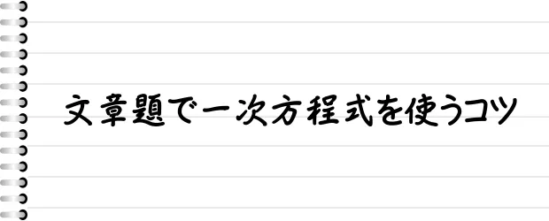 文章題は、必ずどこかに「=で結べる関係」があり、それを式に変換することで方程式が完成します。