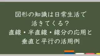 コラム 図形の知識は日常生活で活きてくる?直線・半直線・線分の応用と垂直と平行の活用例 中学1年で学ぶ図形の知識は日常生活に直結しています。直線や半直線、線分は地図や設計で使われ、垂直や平行の考え方は建築やデザインに応用されます。本記事では、身近な生活や将来の仕事にどう役立つのかを具体例とともに解説し、学ぶ意味をわかりやすく紹介します。 2025.09.15 コラム