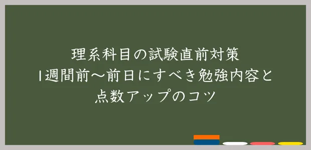 このページでは理系科目の試験直前期の勉強方法やその内容、試験当日から本番中の向き合い方まで解説してきました。