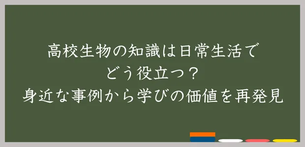 上述した内容だけでも十分高校生物の知識が日常生活で活かせるということが分かったと思います。