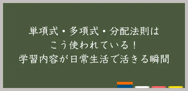 「単項式」「多項式」「分配法則」など、少し難しそうな言葉が並びますが、実はこの内容は、私たちの日常生活の中でも深く関係しているのです。