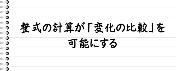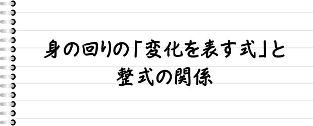 このように、整式は「ものごとの数量関係を数式で表す」ための表現方法なのです。