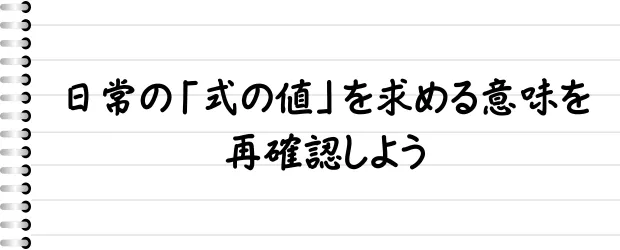 つまり、式の値を求めることは、「現実の結果を数字として導く」ということなのです。