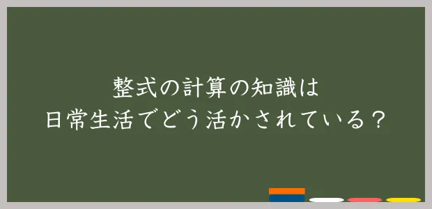 このページでは、「整式の計算や式の値がどんな意味をもつのか」「それらの知識が日常生活でどのように活かされているのか」を、実際の身近な例を交えながら解説していきます。