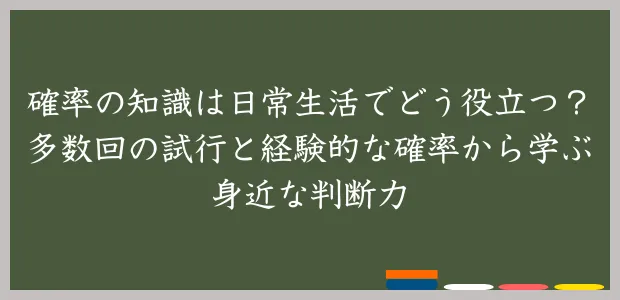 ここまでは、「多数回の試行」や「経験的な確率」が、日常生活の中でどのように自然に使われているかを見てきました。