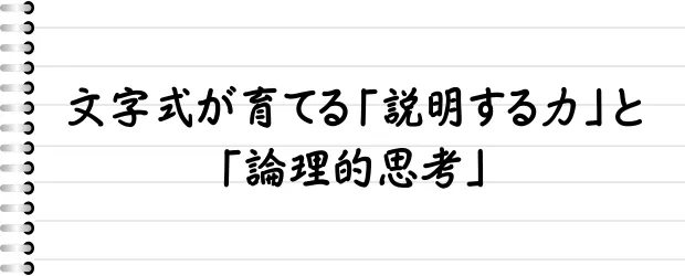 しかし実は、この文字式を理解する力こそが、社会に出てからも役立つ「論理的思考力」や「説明する力」の基礎となるのです。