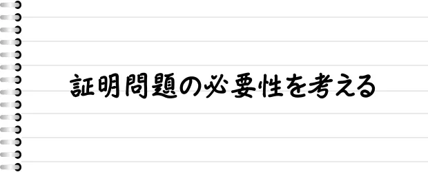 ここまでで「証明問題の意味」と「証明問題の必要性」について理解できたと思います。